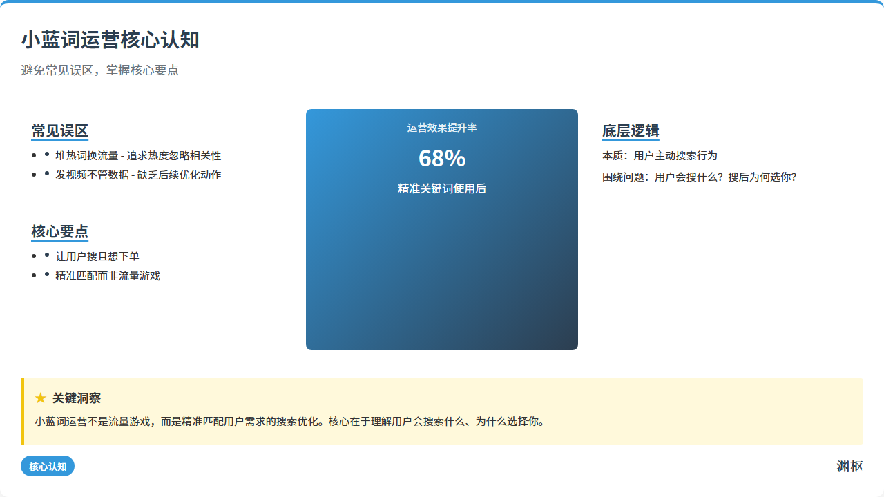 我当初踩的坑,你别再踩了——小蓝词不是“流量游戏”,是“精准匹配游戏”:把对的内容,推给对的人,自然就能卖货。