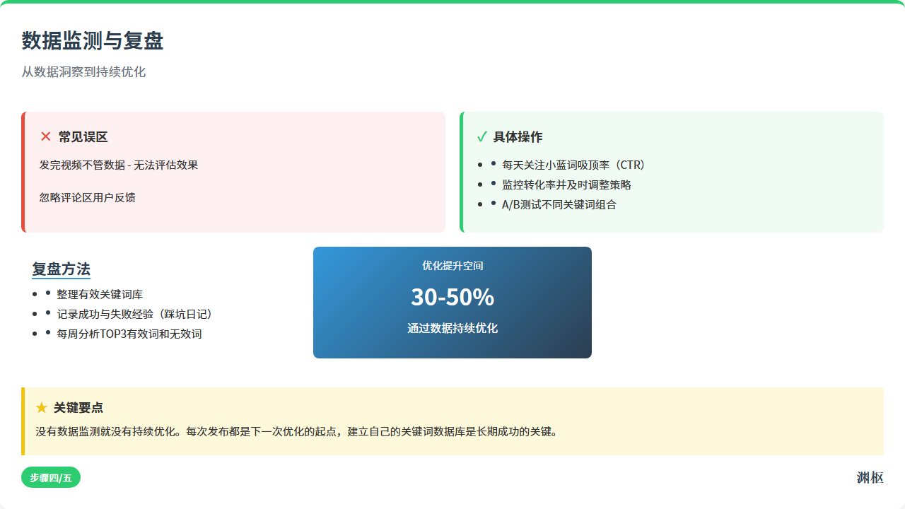 很多人发了视频就不管了,等一周后看“播放量”——这等于“闭着眼睛开车”,撞墙了才知道改。