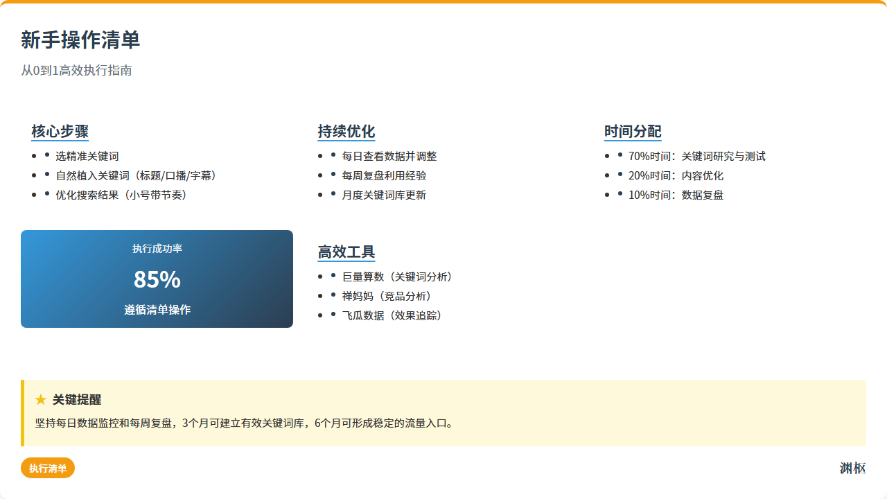 2. 写“踩坑日记”:把这周做错的事记下来,比如“选了‘洗面奶推荐’这个热词,流量1000,转化3单——以后再也不选泛词”“口播硬念关键词,播放量掉了50%——以后要自然植入”——下次做的时候,先看“踩坑日记”,避免重复犯错。